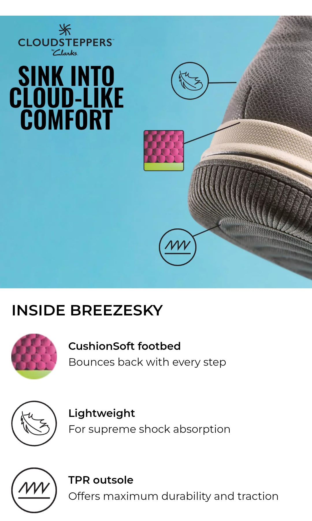 - لایههای فوم Cushion Soft™ باعث جذب ضربه و راحتی میشوند.