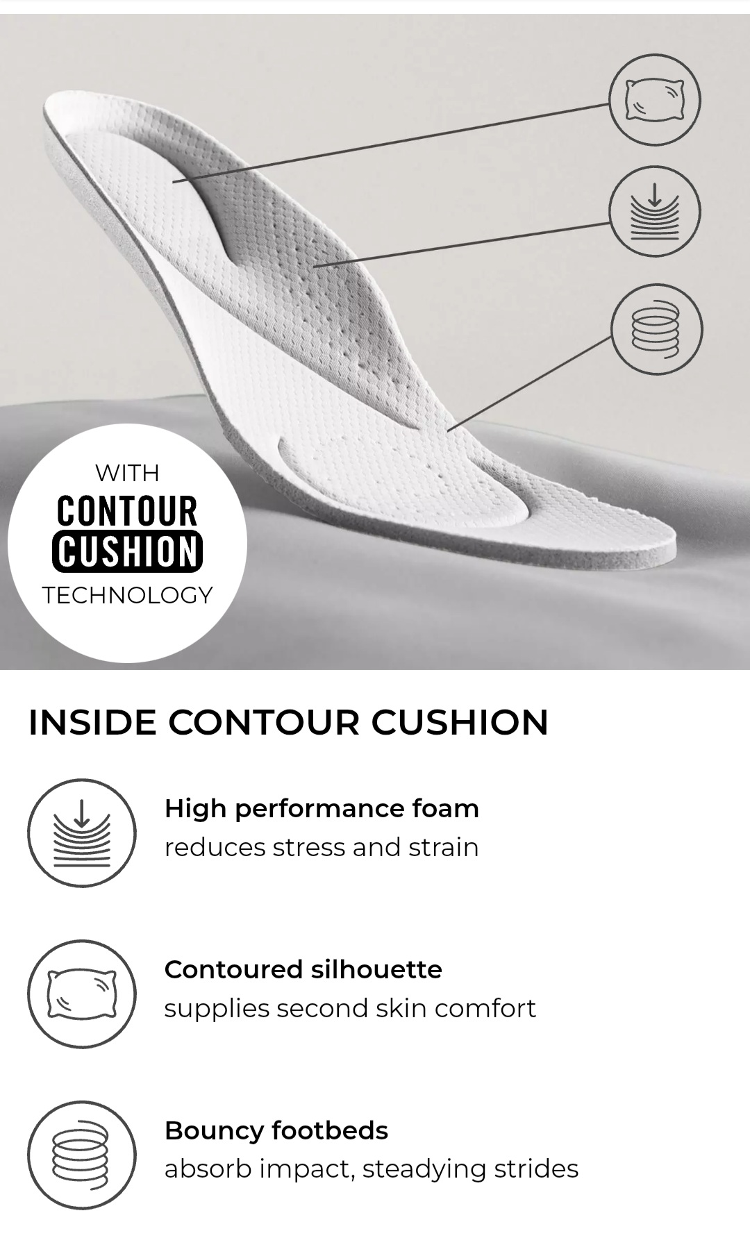 - کفی قالبگیری شده با بالشتک کانتور، راحتی بینظیری را در زیر پا ارائه میدهد