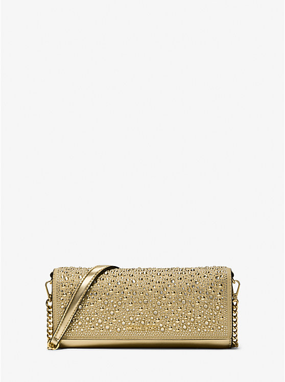Jet Set Medium Embellished Metallic Leather Clutch