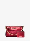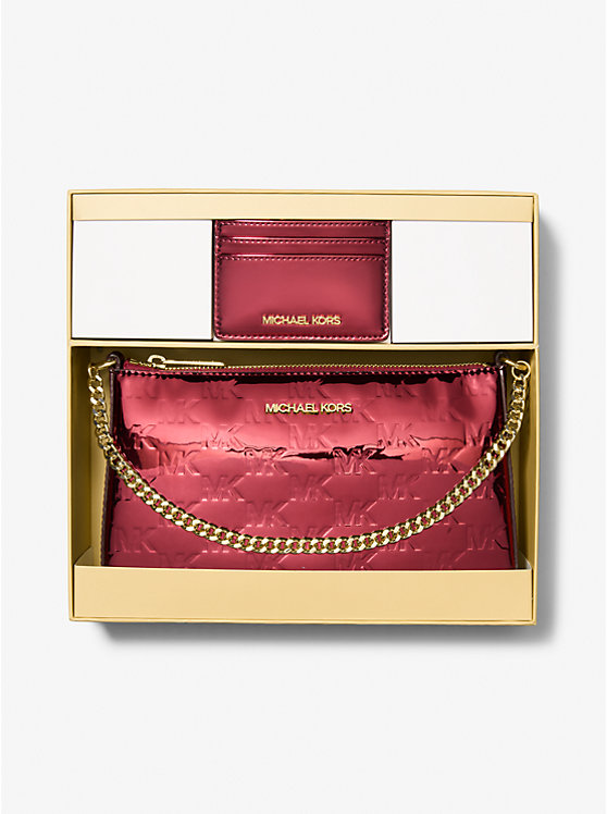 Michael Kors Jet Set Medium Metallic Logo Debossed Pochette & Card Case Gift Set