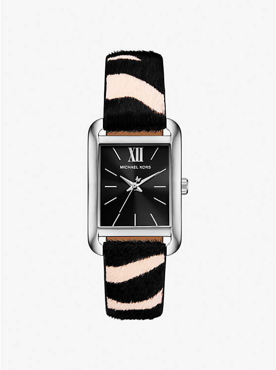 Michael Kors Monroe Silver-Tone and Zebra Print Calf Hair Watch