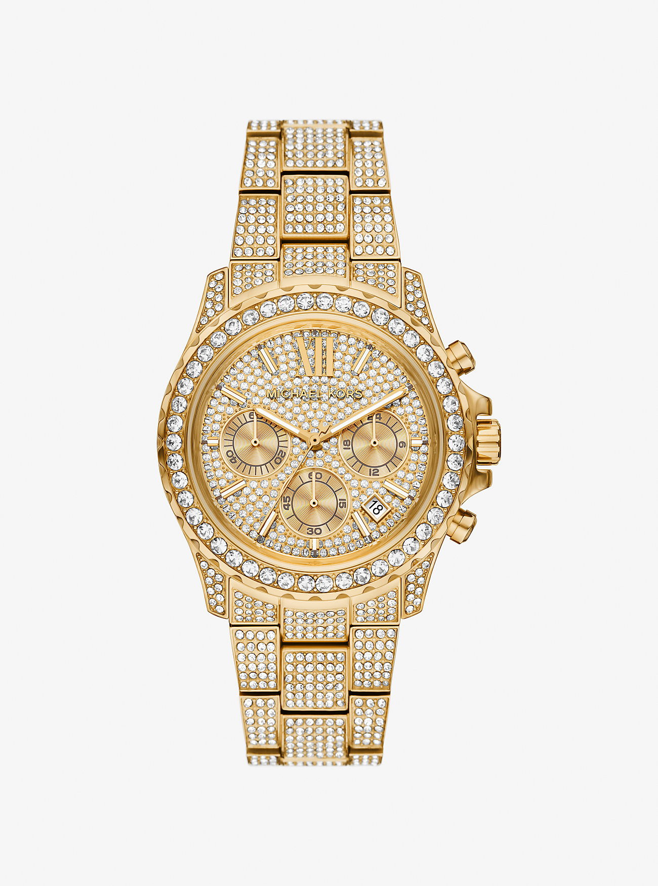 Michael Kors Oversized Everest Pavé Gold-Tone Watch